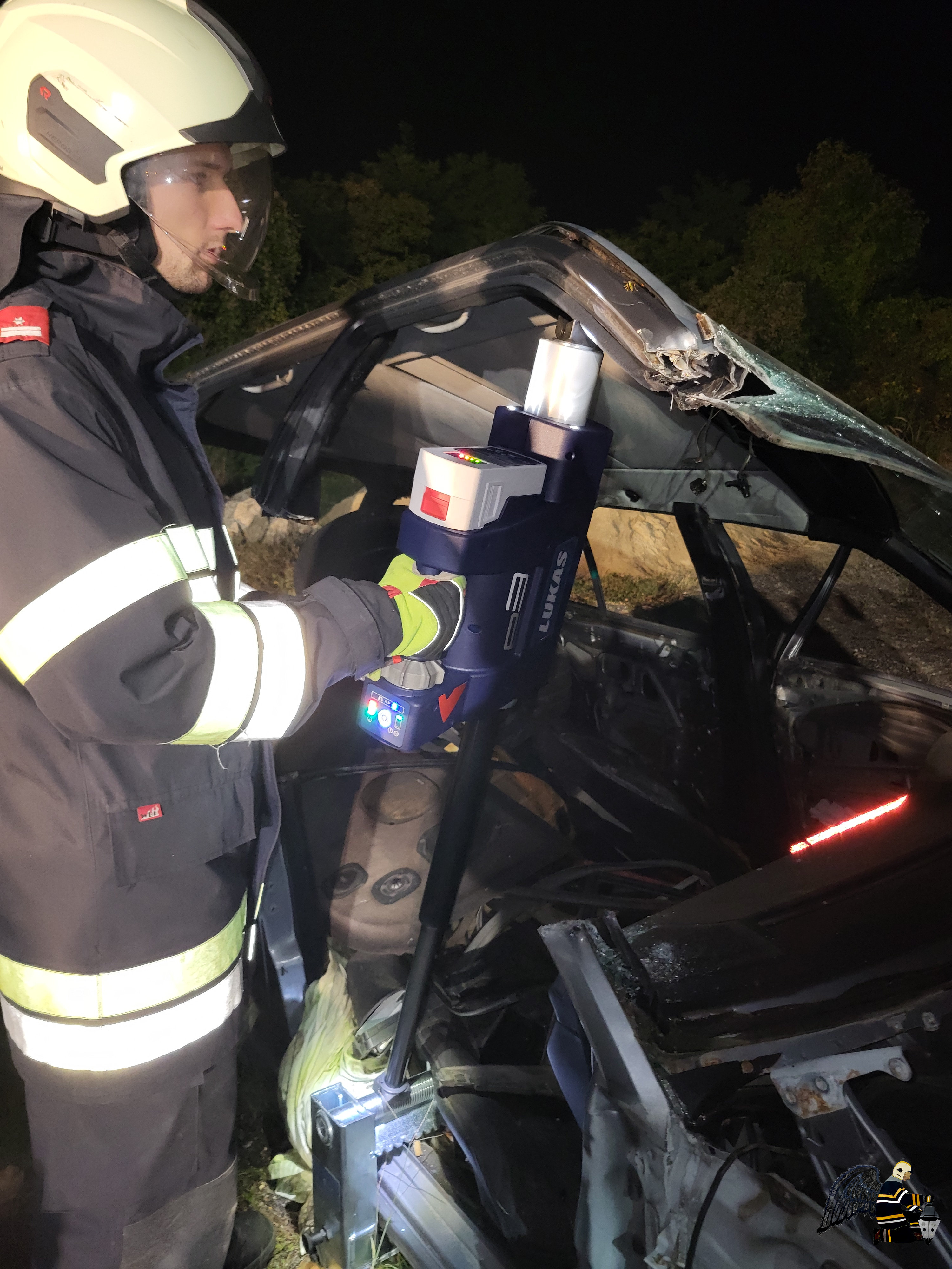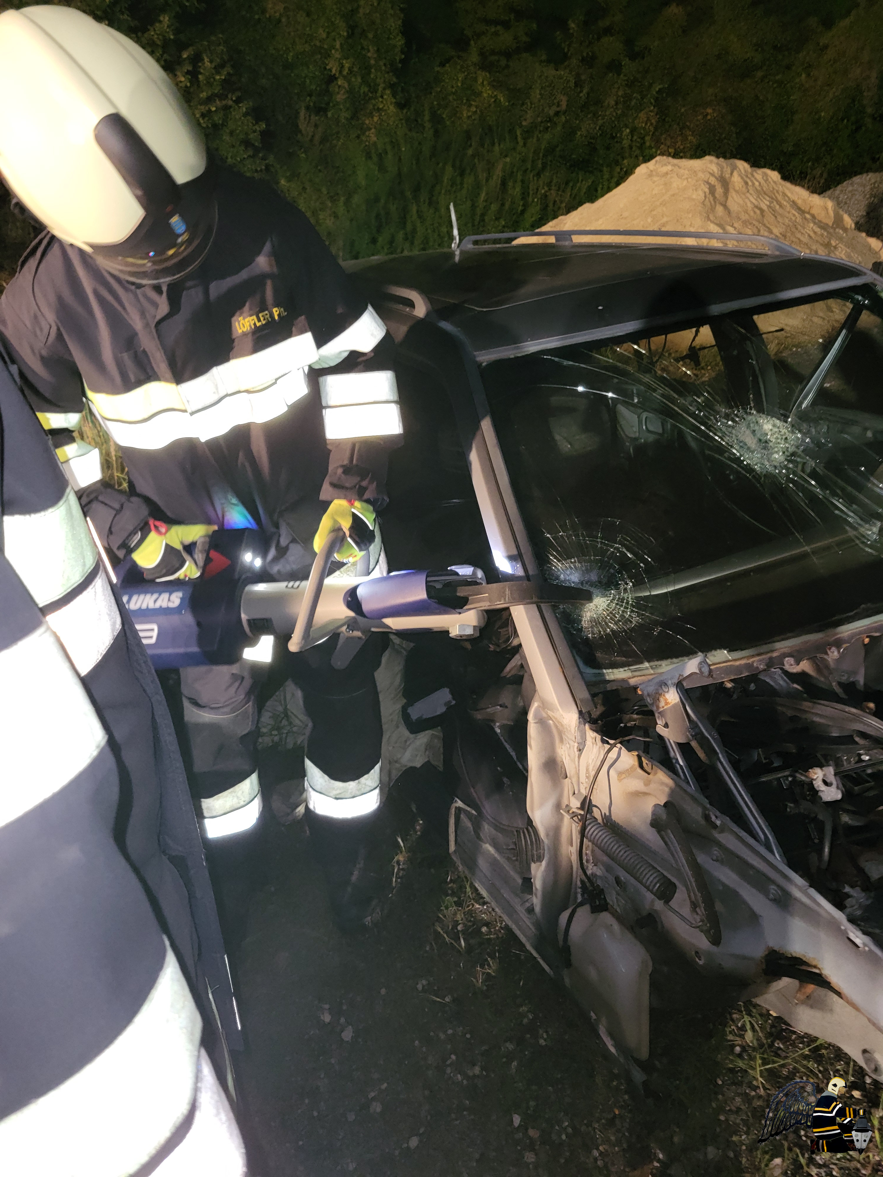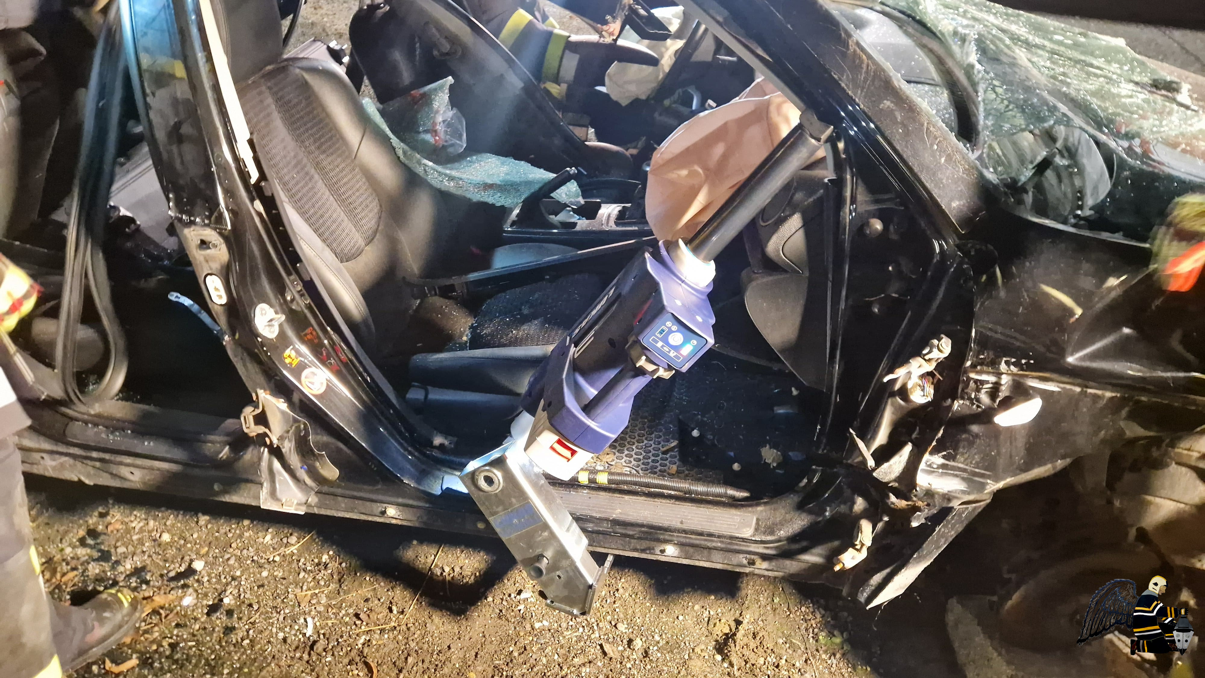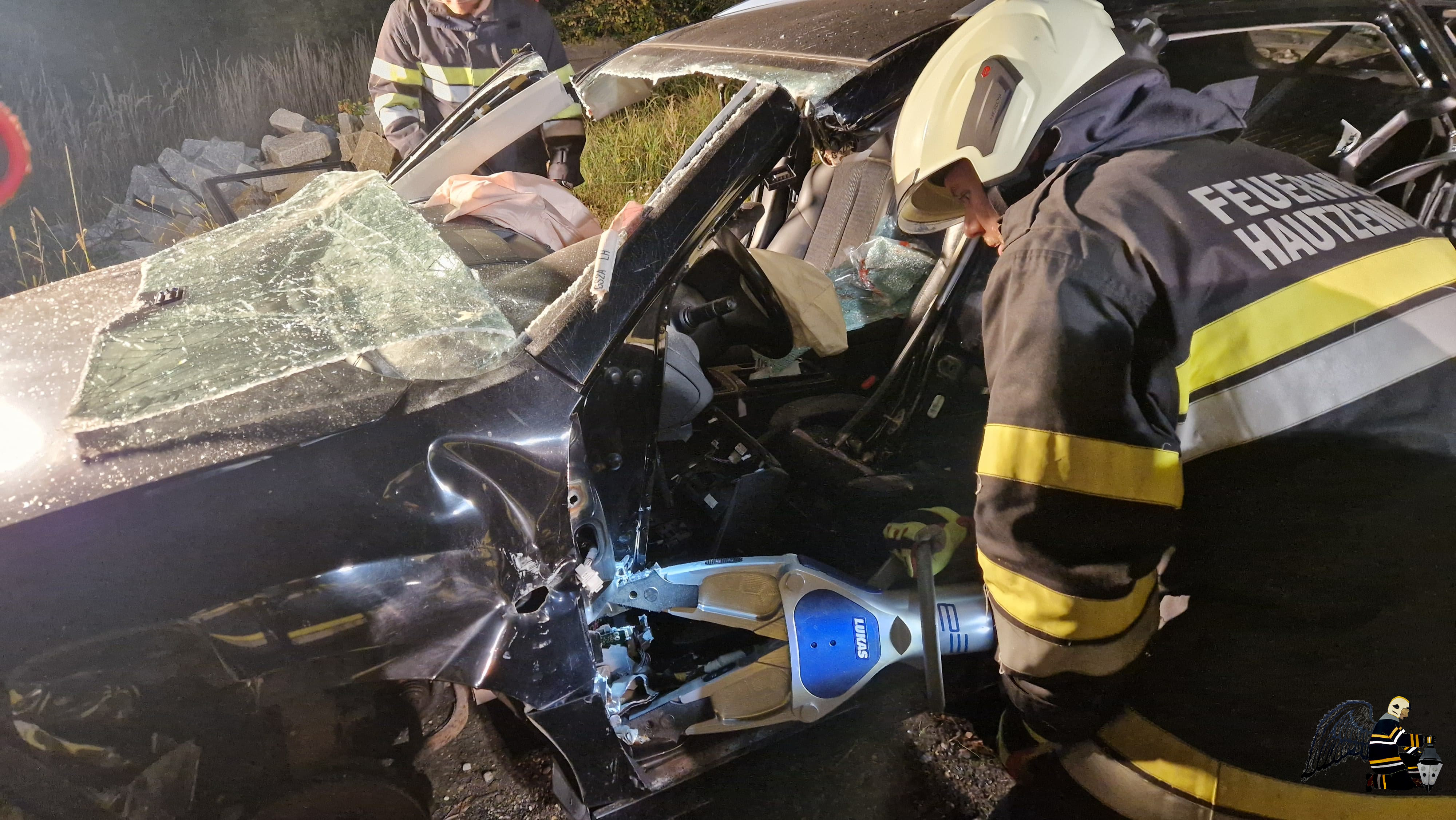 - Mit dem hydraulischen Rettungssatz wurde zunächst der Fahrer des PKW befreit.